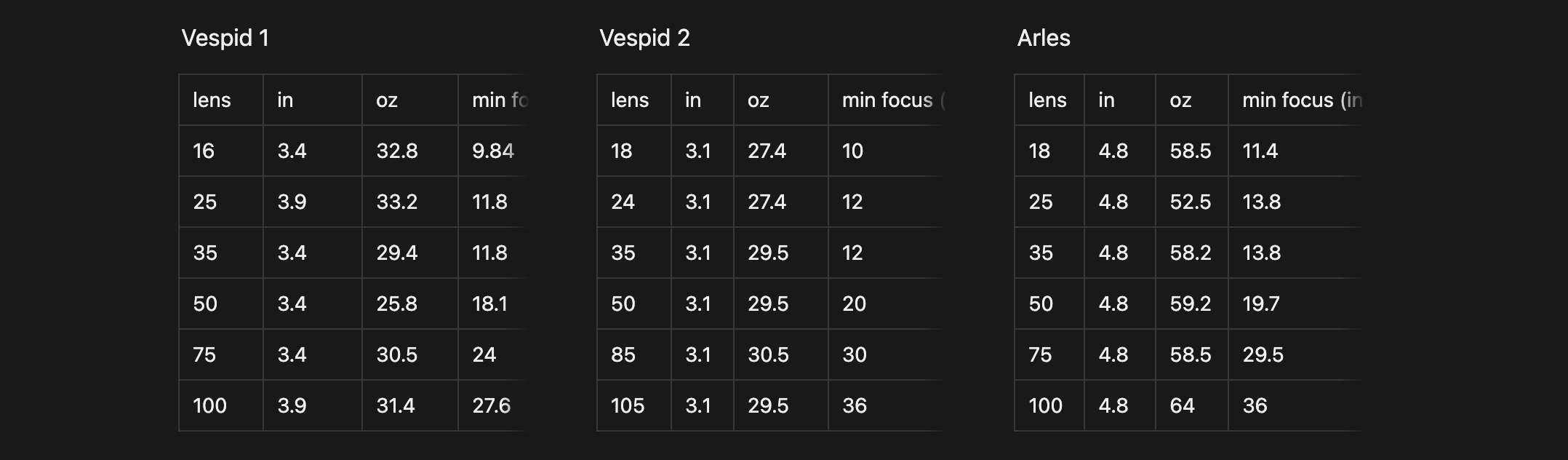 The Vespid 1’s have impressive minimum focus, the Vespid 2, again, sits right between the Vespid and Arles, and if I had to be picky, the outliers to me are the 75 and 100mm Arles. I’ve spoiled and use my macro lenses for product shots, and I would love to have the image quality of the Arles, but use them closer up for product shoots, but at that point, I’ve been using dedicated macro lenses. Would love to see the Arles and Vespid 2 have a 100mm macro introduced to the line up.